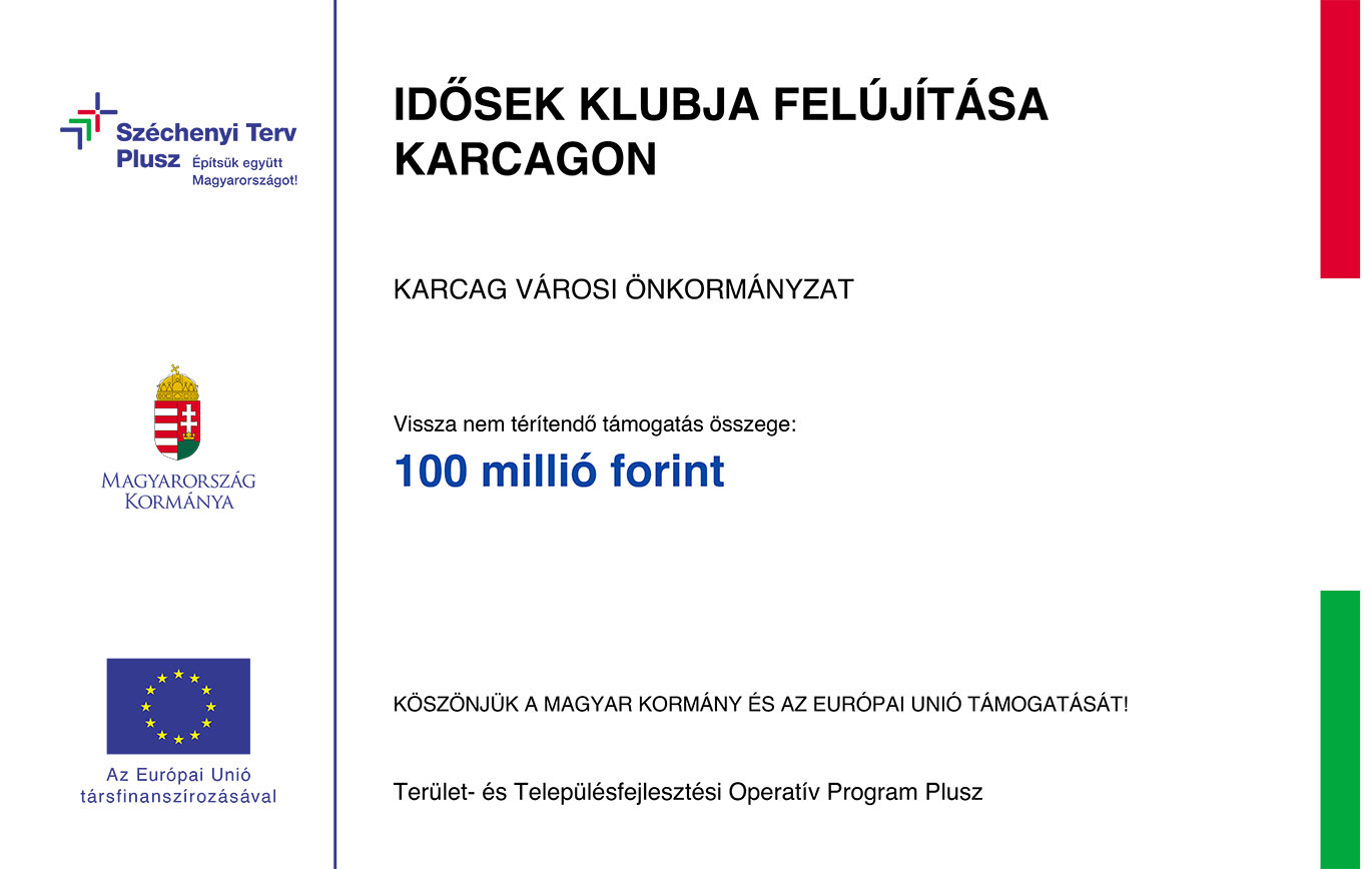 Európai Uniós Projektek - Szechenyi Terv Plusz Kinizsi Utcai Óvoda felújítása Belterületi utak felújítása Karcagon Idősek klubja Felújítása Karcagon Dózsa György utcai iskola épületének energetikai korzserűsítése Városi Sportcsarnok energetikai korzserűsítése Nagyvénkerti városrész fejlesztése A közösségi és egyéni szintű társadalmi integráció feltételeinek megteremtése Karcagon